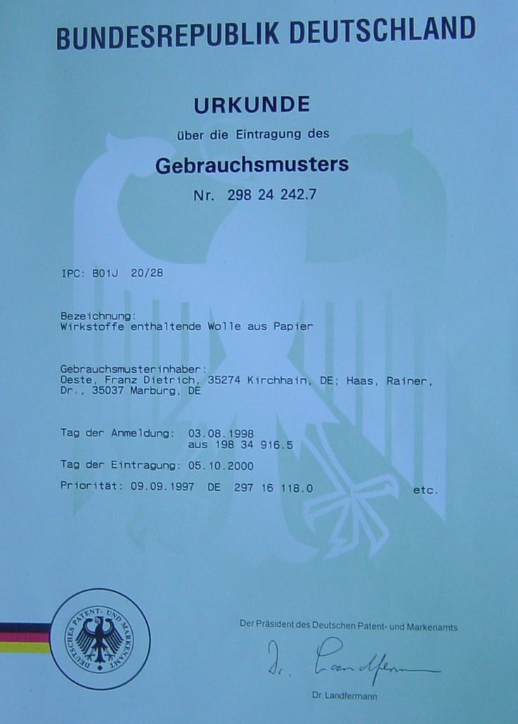 iena3.jpg: Erfindermesse IENA 2000; Goldmedallie für gaiasafe-Filterwolle zur Trinkwasserreinigung